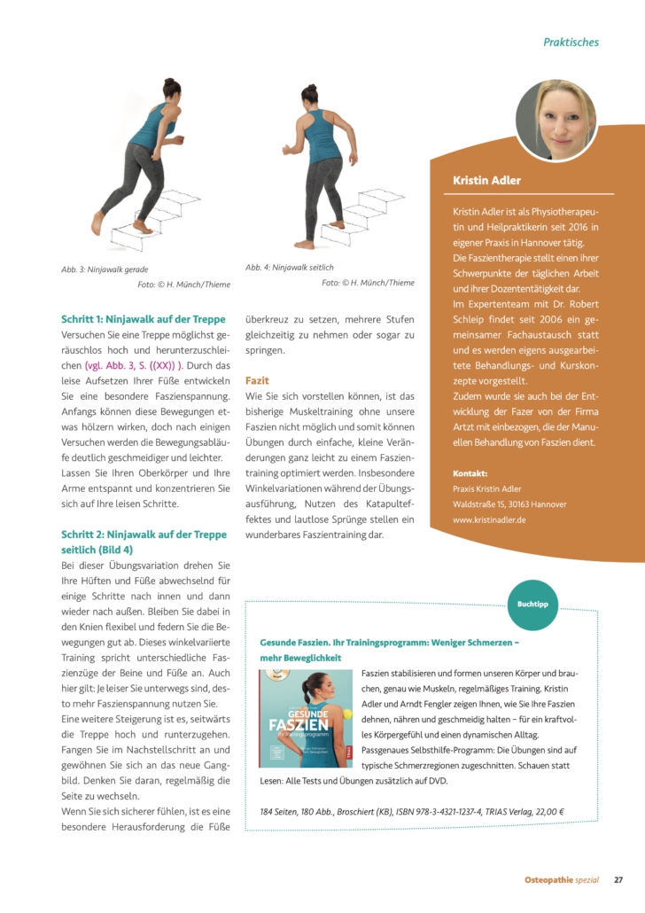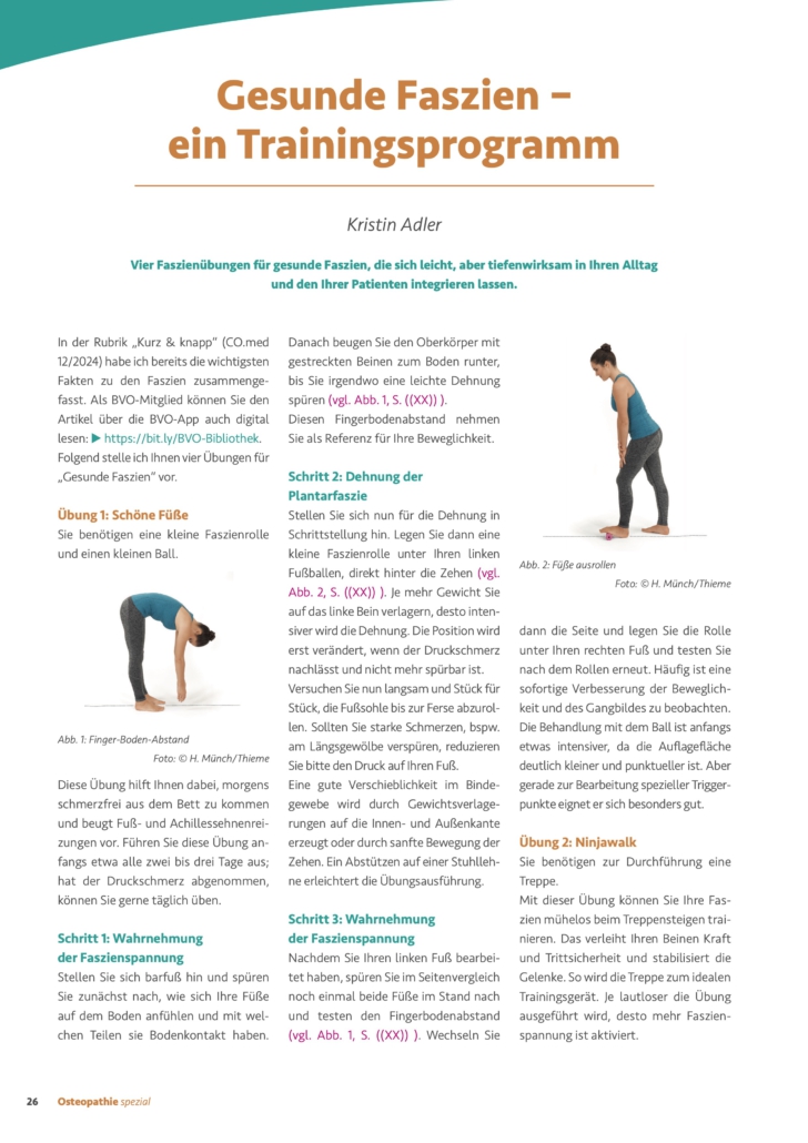 In der Fachzeitschrift für Osteopathie für den BVO (Bundesverband Osteopathie) hatte ich erneut die Möglichkeit einen Artikel zum Thema Faszientraining zu publizieren.